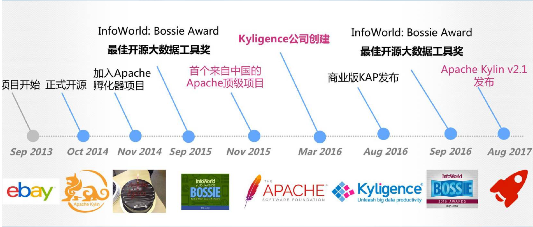 ”第一个由中国团队完整贡献到 Apache 的顶级项目诞生了,它就是 Apache Kylin(麒麟)。而从最初开源到成为 Apache 顶级项目,Apache Kylin 只花了 13 个月。“^1