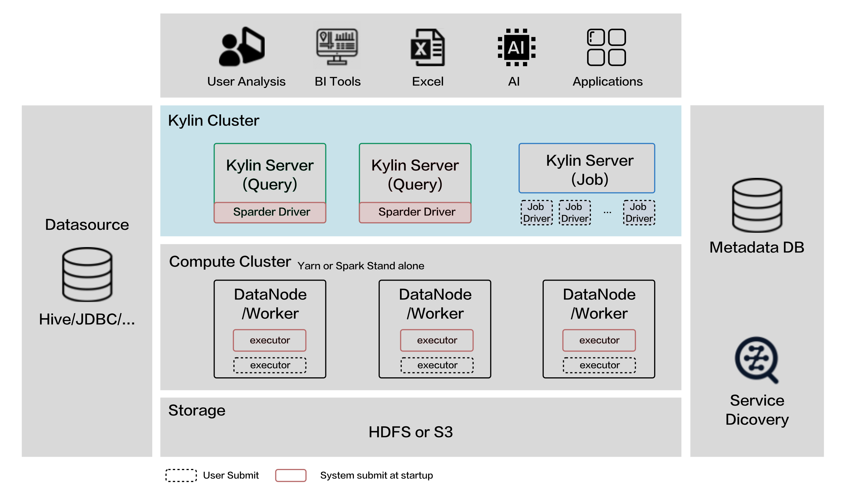 - 存储层: HDFS(Kylin5+ 支持 Parquet 格式)