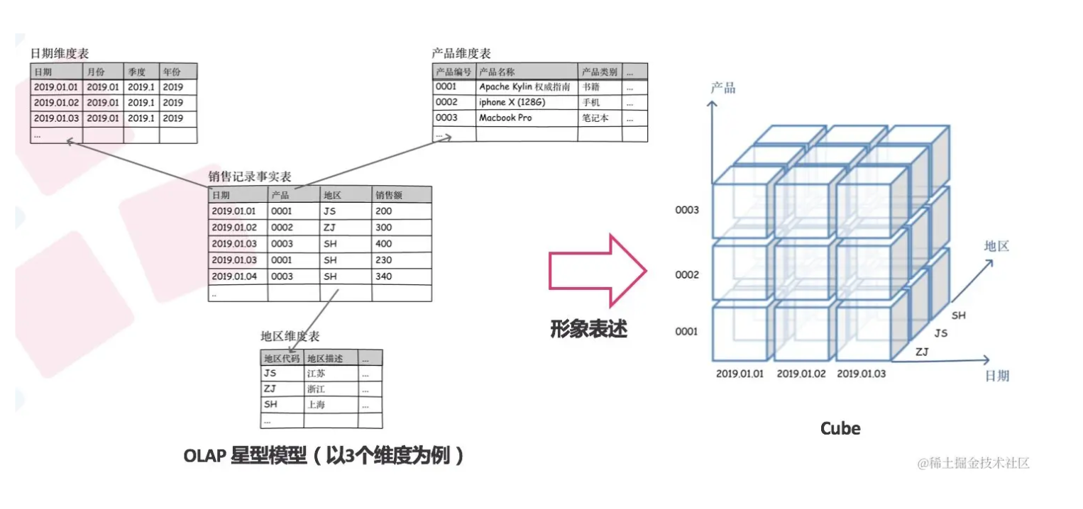 我们可以看到维度有,region,date,那我们直接命中(region,date)的 cube,秒拿数据,再也不用夹在业务催促和数据跑的慢两难之间了。